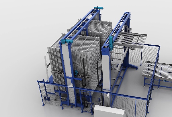 Other infouna macchina per il carico e scarico o funzione buffer del prodotto crudo o cotto. Cinque colonne su cui poggiano e si muovono i bracci mandrini - 2 per ogni box con movimento indipendente e svincolato - e il carrello con rulliera mobile determinano una struttura compatta e alleggerita. Tale semplificazione rende più semplici e veloci le operazioni di movimentazione e installazione, accorciando notevolmente sia i tempi di montaggio interno che quelli in cantiere, facilitando la manutenzione su tutti i livelli.