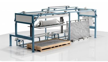 Falcon Slab is a compact automatic set-up for a fluid and safe handling of large slabs